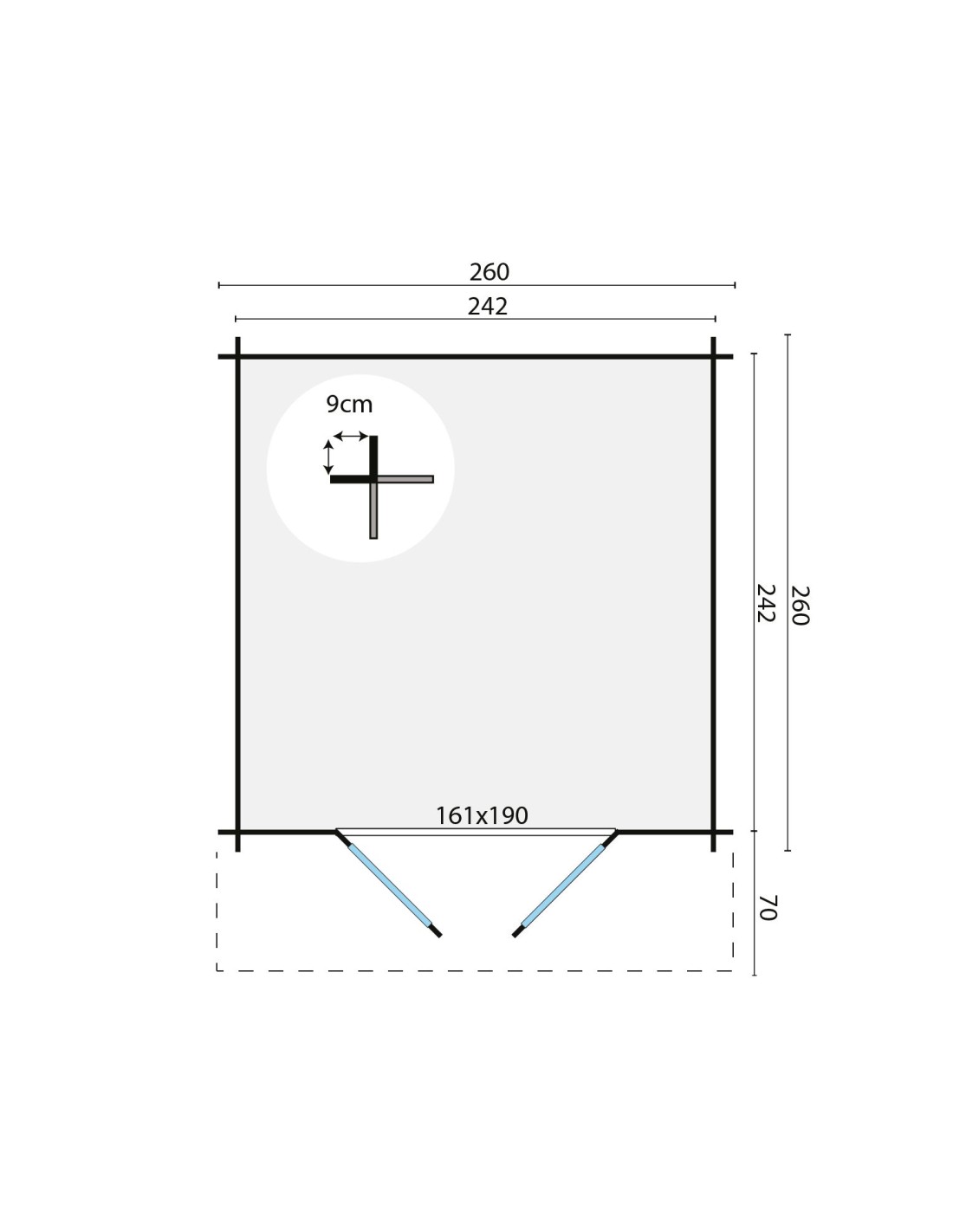 • Dimensions extérieures : 260 x 260 cm (Largeur x Profondeur)