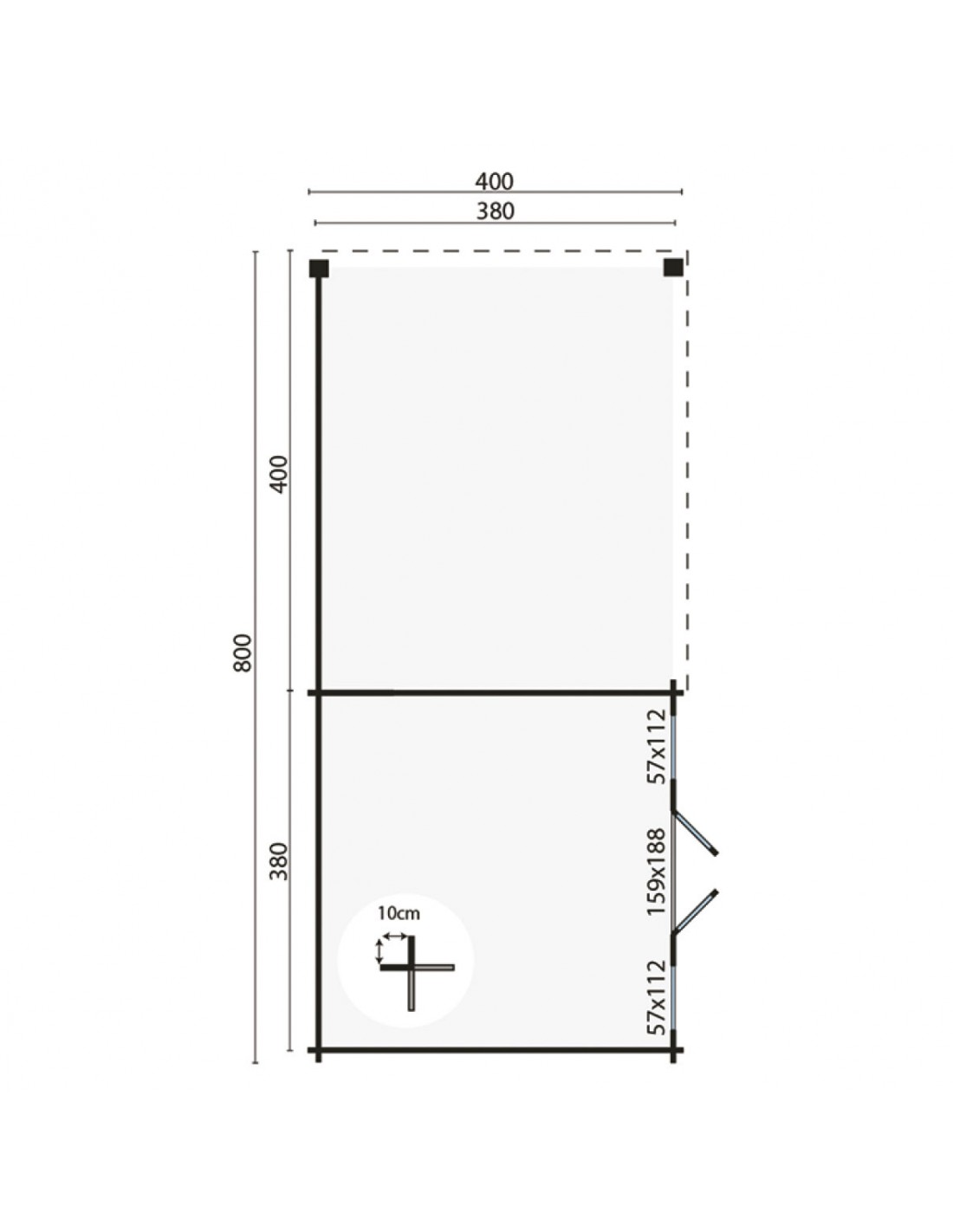 • Dimensions extérieures : 800 x 400 cm