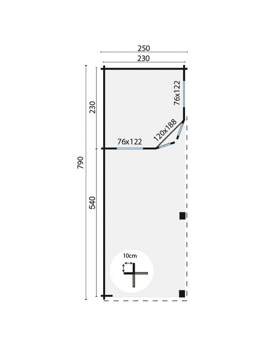 250 + 540 x 250 cm