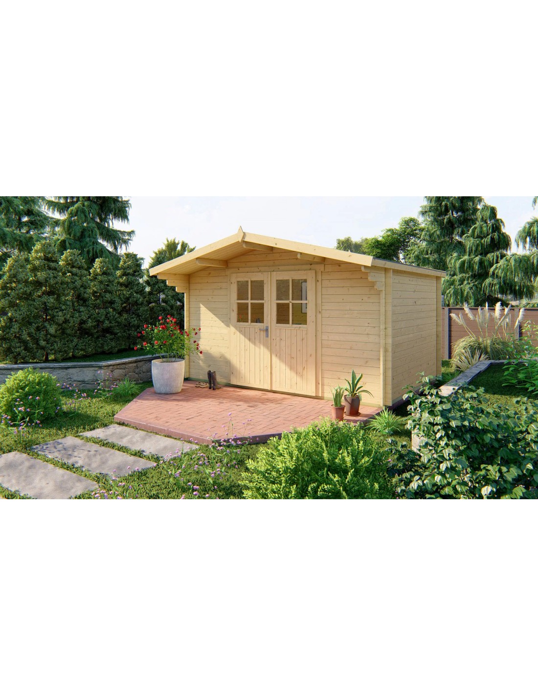 L'abri de jardin Vrebos est un témoignage du savoir-faire et du souci du détail. Sa construction robuste, disponible en pin traité ou non traité, garantit une durabilité longue durée tout en conservant une apparence charmante et naturelle qui complémente tout jardin ou cour. Le toit incliné, couvert de bardeaux, dirige efficacement l'eau de pluie loin de la structure, protégeant vos biens des éléments naturels.
