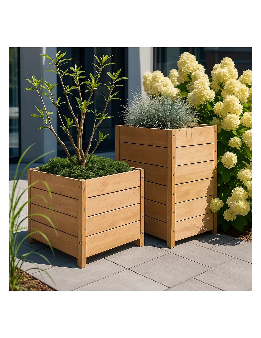 Les bacs à fleurs (ou jardinières) carré(e)s en bois exotique ont un bel aspect naturel. Cette jardinière vous permettra d'y faire pousser des fleurs, légumes ou petits arbustes selon leurs dimensions. Elle s'intégrera parfaitement au jardin après son grisaillemennt naturel. Ce bac potager ou bac à fleurs est disponible dans certaines dimensions, mais nous pouvons les construire sur mesure si cela est nécessaire pour vous, selon vos besoins.