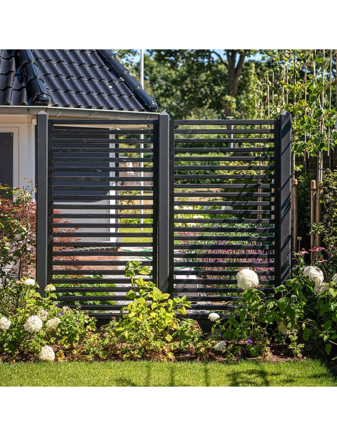 Balustrade de jardin en bois de Douglas. D'une largeur de 180 cm sur une hauteur de 99 cm.
