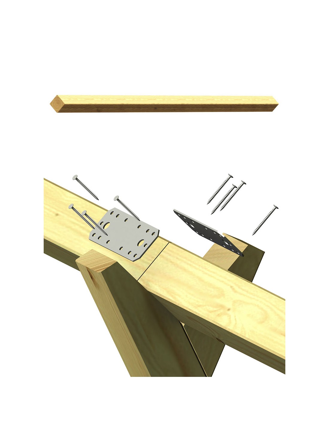 La poutre portique est posée à 45° et atteint de cette façon une épaisseur de 12 cm (voir diagonale). Le montage sur les tours de jeux se fait à l’aide de la fixation pour poutre portique.