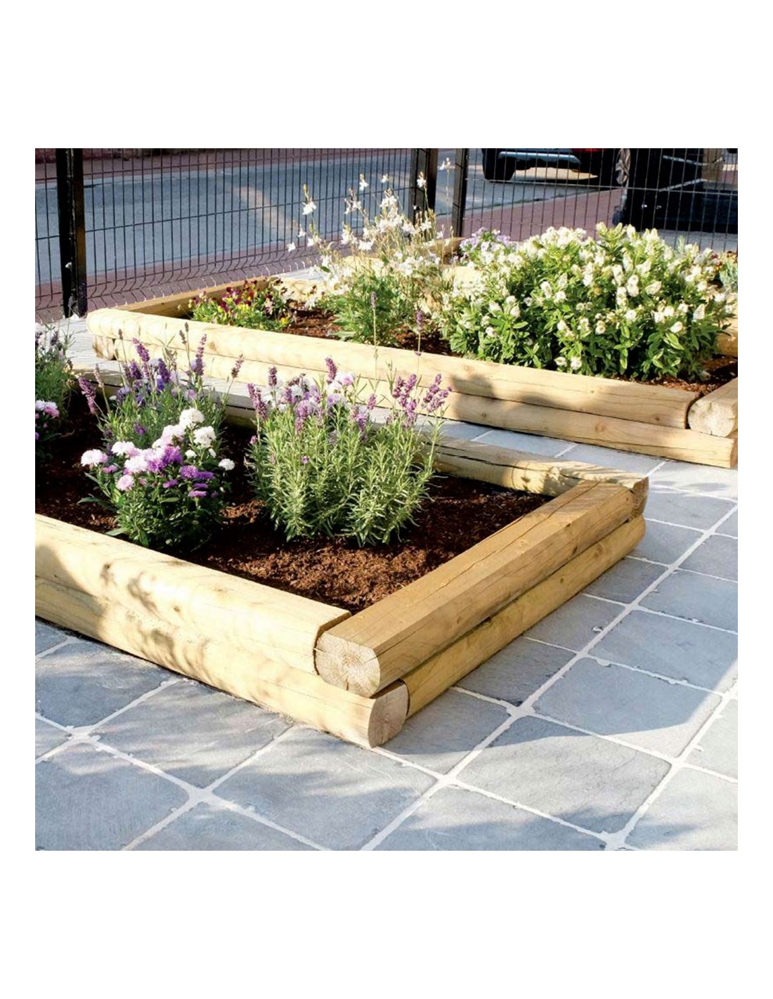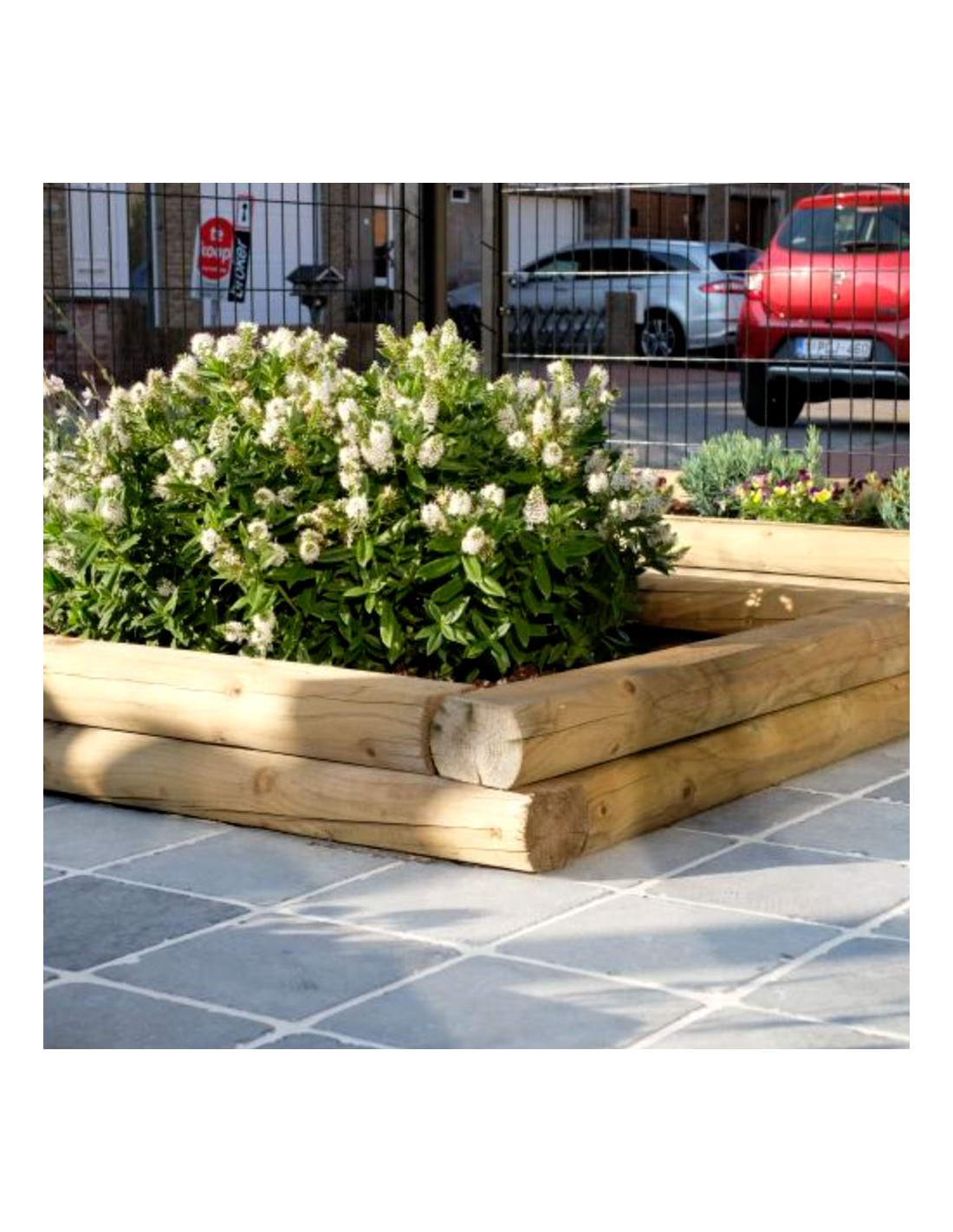Cette mini bille ou rondin de bois a tête plate peut servir de retenue de terre et est fabriquée en rondin de Sapin Rouge du Nord traité (Ø 10/13 cm) et de 2,50 m de longueur.