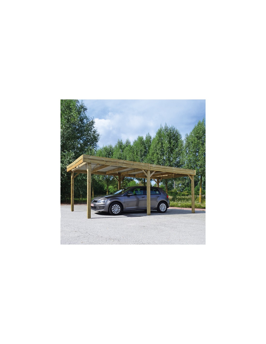 Carport pour 4x4 de 3 x 5,8 m en bois traité – Structure robuste avec toiture en tôle acier