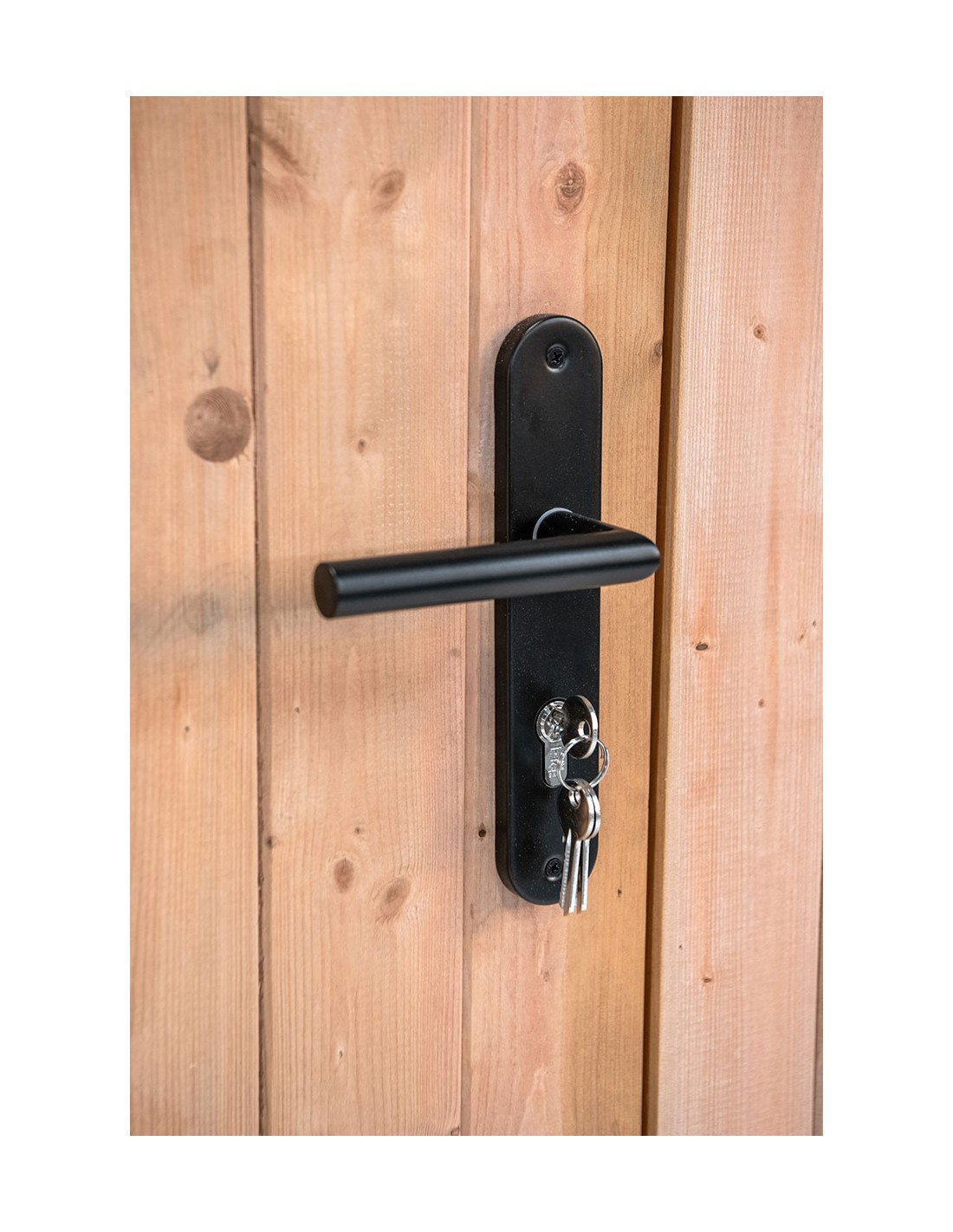 Porte double pour abri de jardin pleine ou avec vitres. Elle est fournie avec son cadre, ferrure de porte et serrure à cylindre. La largeur de la porte est de 180 cm sur une hauteur de 201 cm.