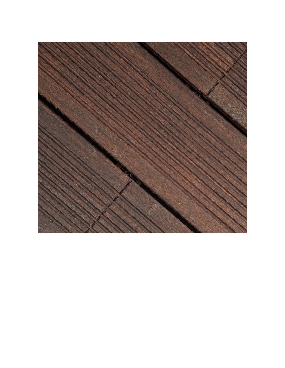 - 7 mètres courants de planches de terrasse en bambou ainsi que 3 mètres de lambourdes ou chevrons de bois exotique. Plus 16 clips.