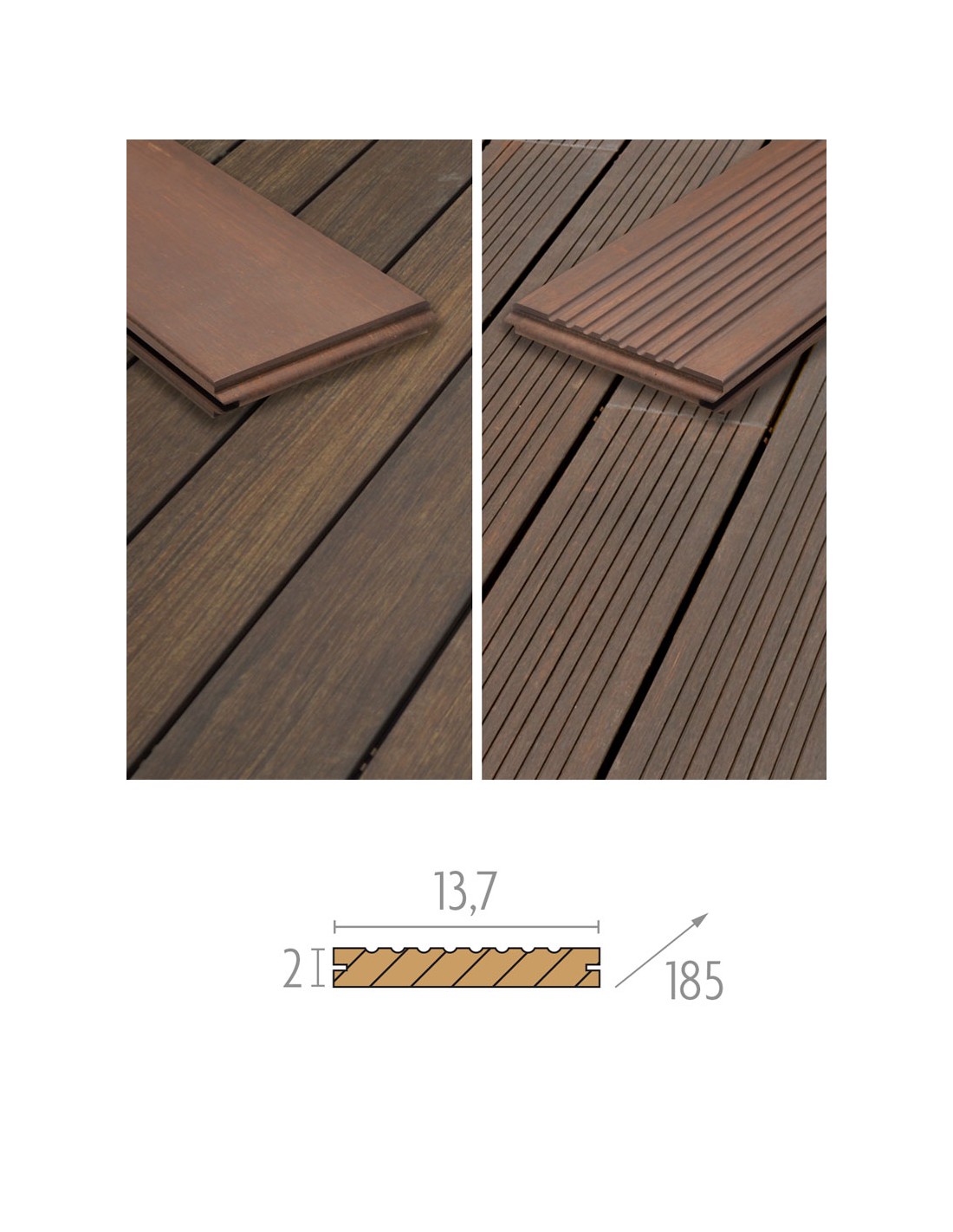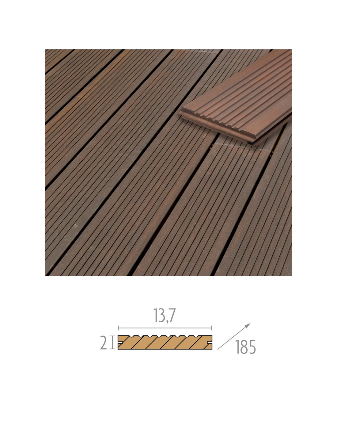 Planches de terrasses en bambou 20x137 mm avec ou sans clips et chevrons. Prix par m2.