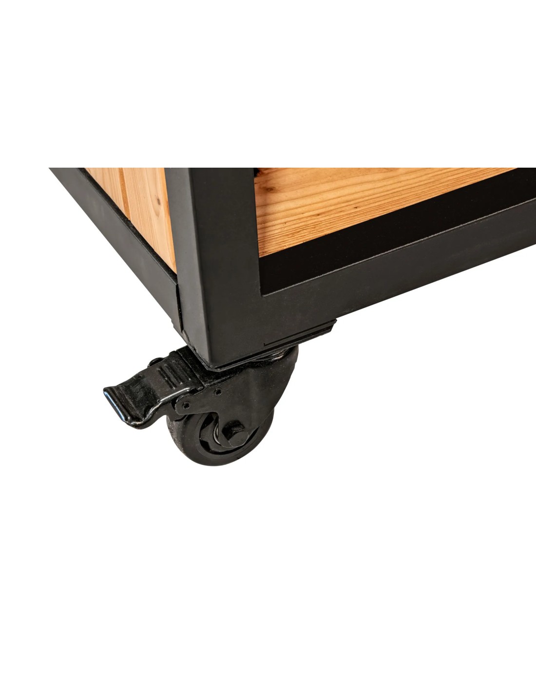 Ce meuble de cuisine d'extérieur ne se contente pas d'être fonctionnel; il est également conçu avec un immense souci du détail. Le cadre est fabriqué à partir d'acier solide avec des tubes carrés de 4,0 x 4,0 cm, tandis que les portes, les parois latérales et arrière, ainsi que les étagères, sont faites de Douglas assemblé pour garantir résistance et longévité. Le plan de travail, élaboré à partir de profils de chalet Douglas collés, réaffirme l'engagement pour la qualité et l'esthétique.