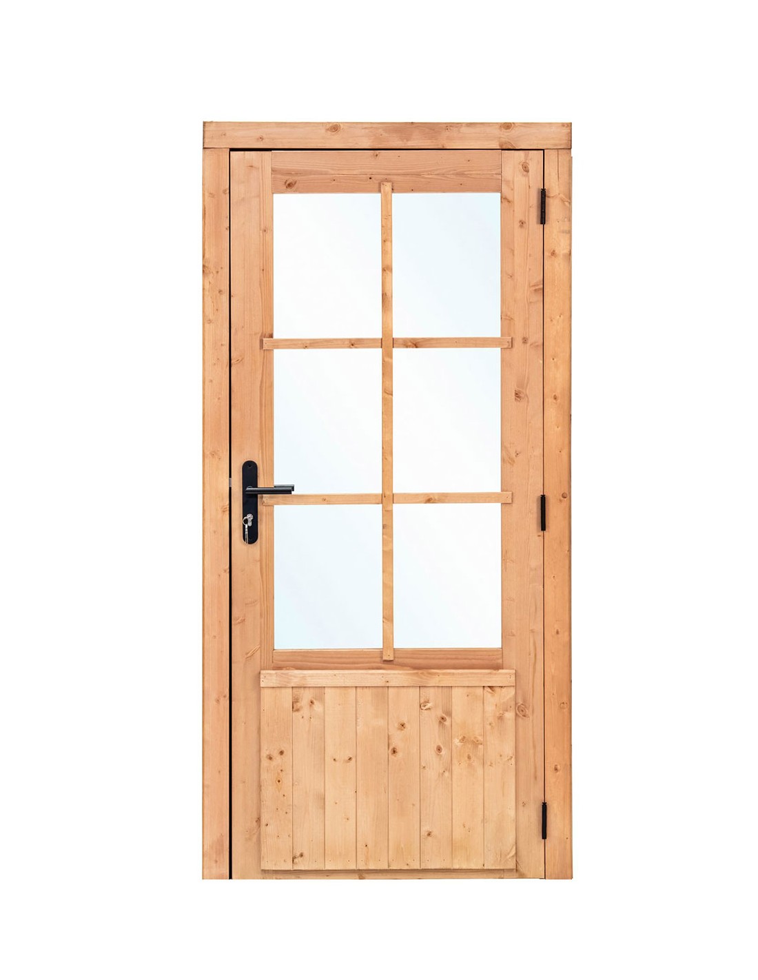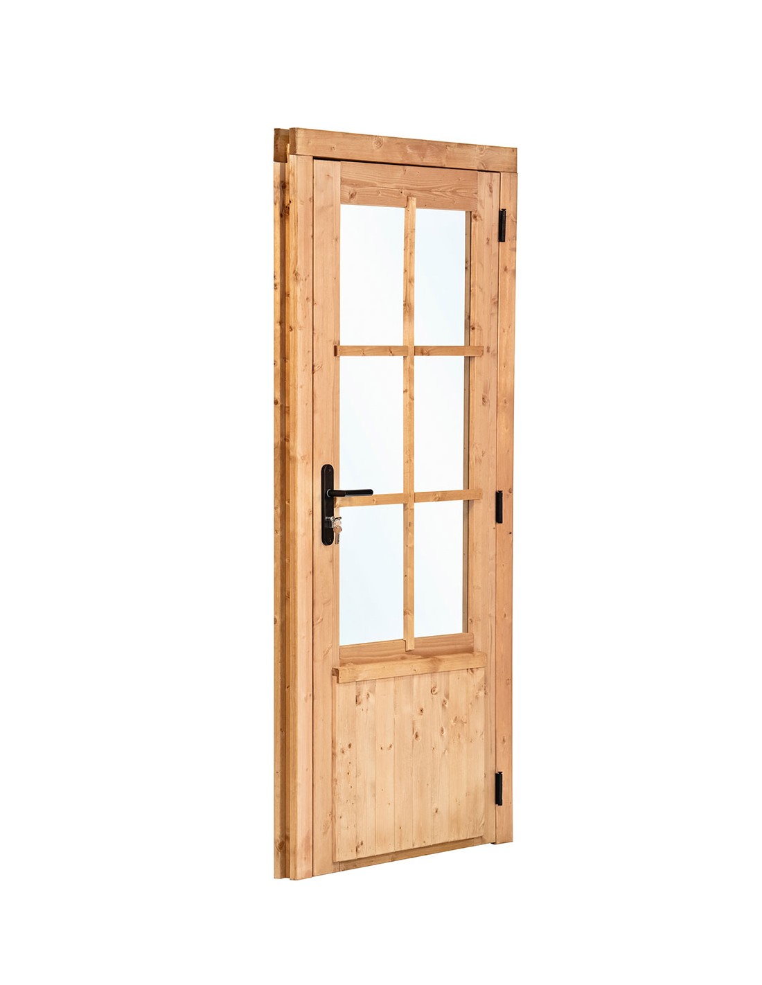 Ajoutez style et luminosité à votre abri de jardin avec notre porte simple vitrée en bois, idéale pour les constructions extérieures. Cette porte est conçue pour s’adapter facilement à tout type d’abri ou de cabanon de jardin, tout en assurant sécurité et esthétisme.