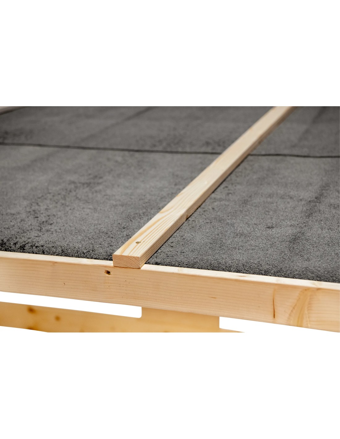 Notre produit arbore un toit à pente légère incliné à 7 degrés, optimal pour l'écoulement de l'eau, et est couvert de feutre de toiture afin de garantir une protection contre les intempéries. Avec un bois pré-séché, soyez assuré que votre bois restera dans un état impeccable.