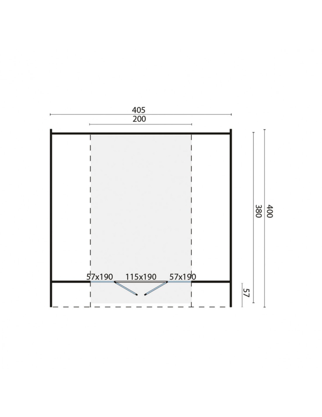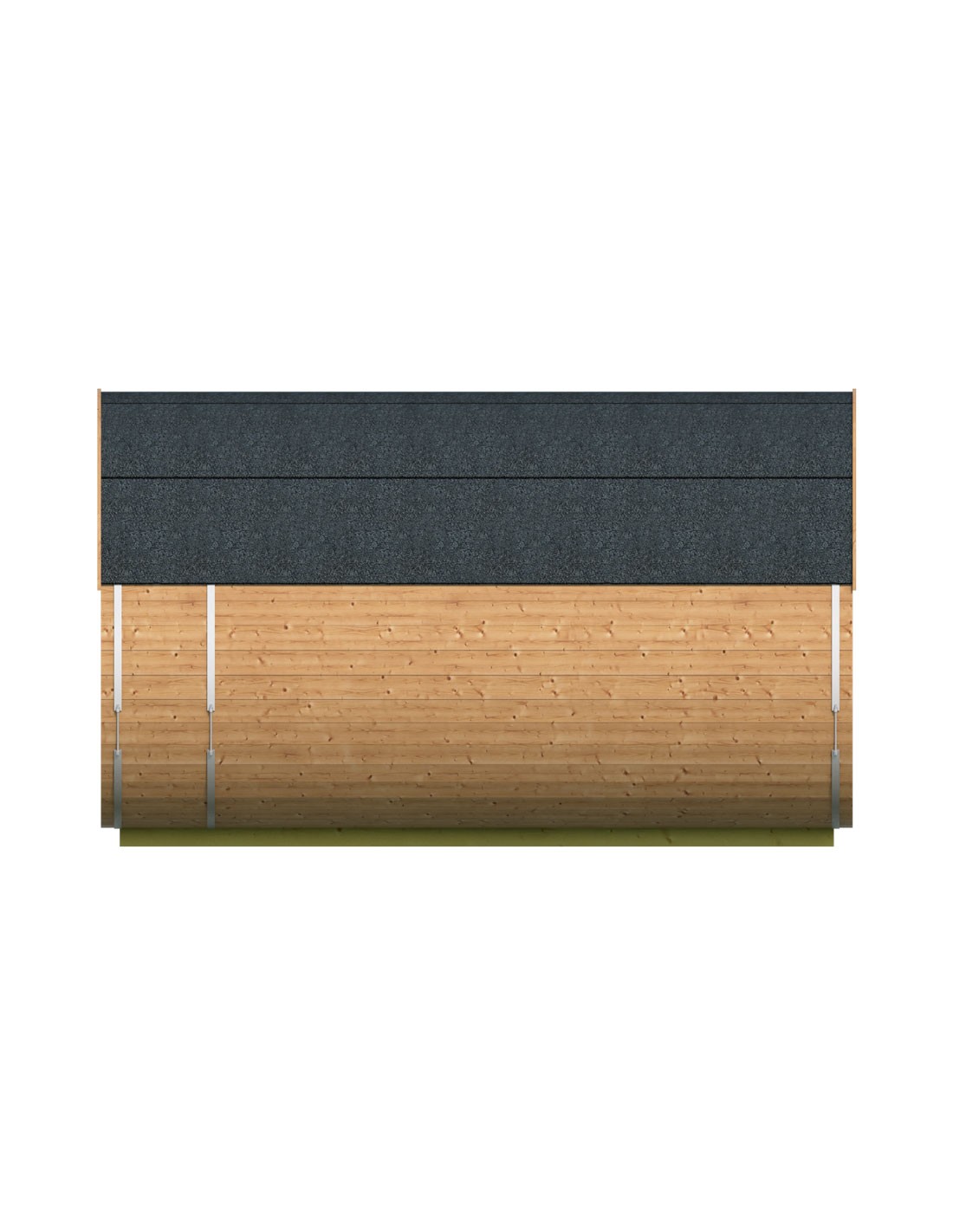 • Fondations : dimensions de 200 x 380 cm, plancher et structure de fondation en bois inclus