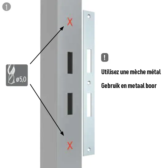 Zorg dat de uitlijning correct is, zodat de deur goed stopt tegen de plaat.