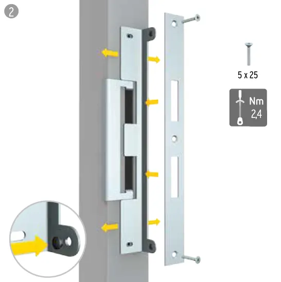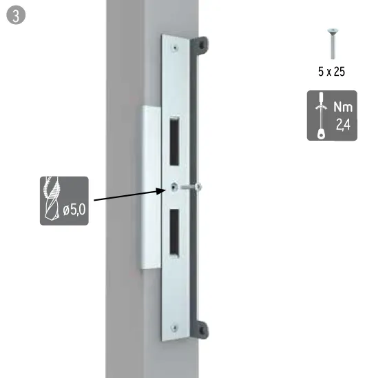 Bevestig de deurstop plaat op de juiste plek met de 5 x 25 mm schroeven.