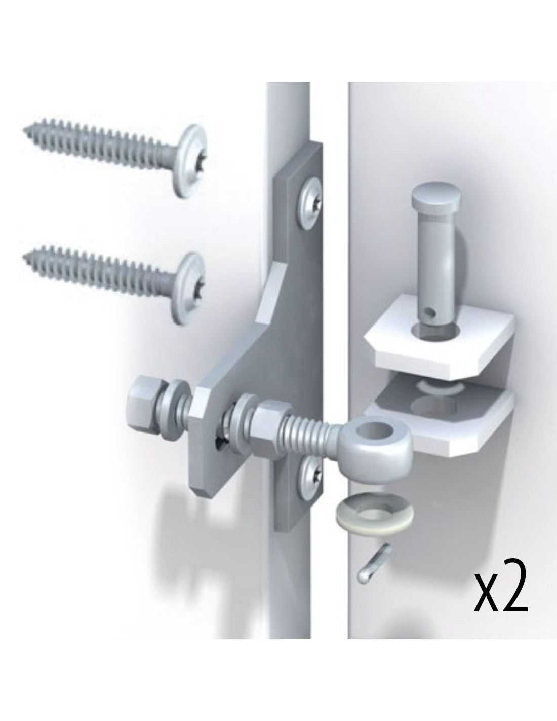 Kit beslag voor het monteren van deuren op metalen paal, gegalvaniseerd metaal, inclusief scharnieren en paumelles. Bevestiging met schroefsets, 8 x 40 mm