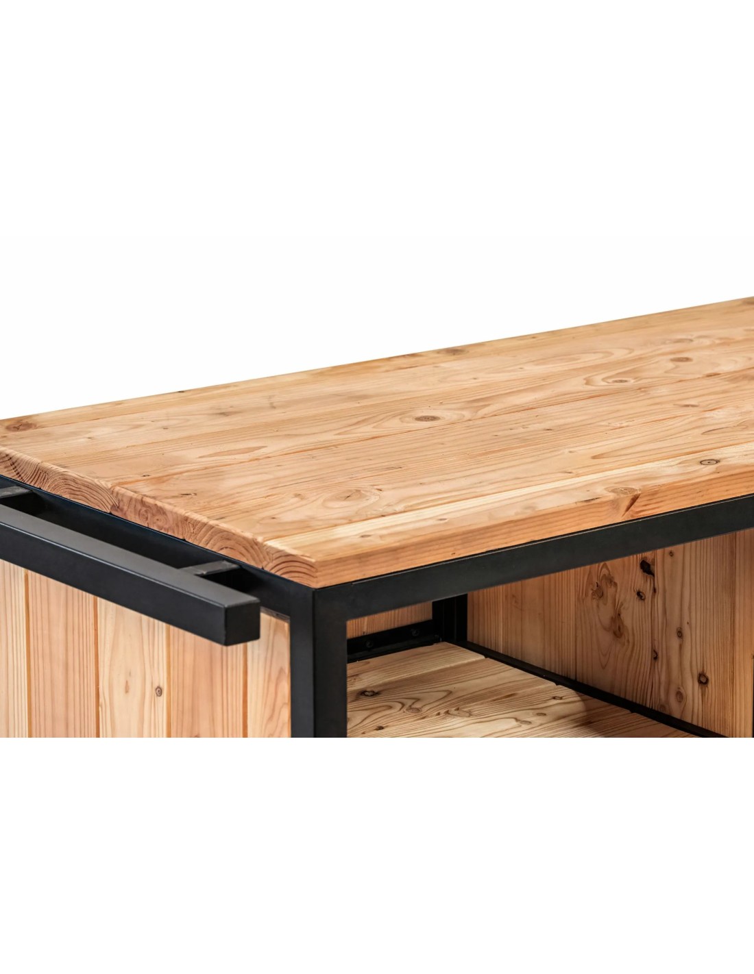Kwaliteitsmaterialen: Hoofdzakelijk gemaakt van Douglas, combineert dit keukenmeubel hout en staal voor een tegelijk rustieke en moderne esthetiek.