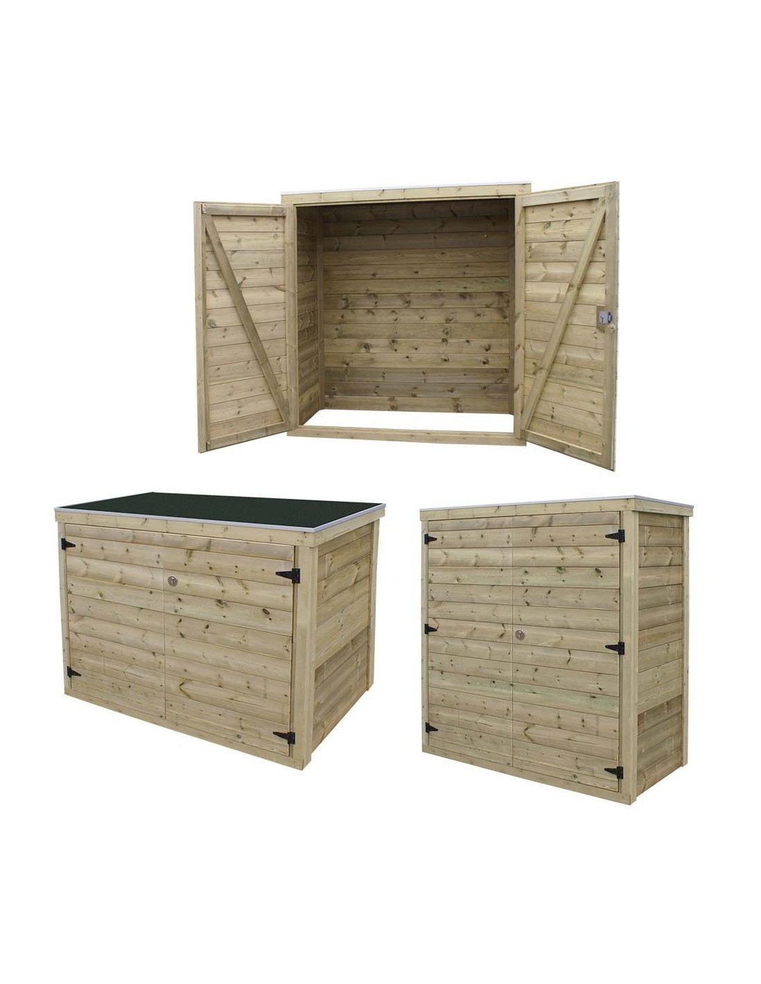 Optimaliseer de opslag op uw terras met deze grote houten buitenkast, ideaal voor het opbergen van tuingereedschap, kussens of klusbenodigdheden, beschermd tegen weersinvloeden. Gemaakt van massief, autoclave klasse 4 behandeld grenenhout biedt deze stevige terrasopbergkast een uitstekende balans tussen natuurlijke esthetiek en duurzaamheid.