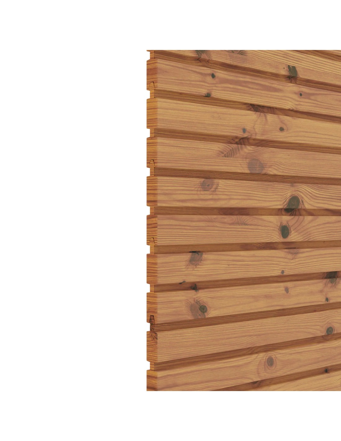Het smalle tand-en-groefprofiel is zowel esthetisch als functioneel, en geeft je tuin of terras een moderne en strakke uitstraling. Het modulaire systeem biedt veel flexibiliteit bij het plaatsen: de panelen kunnen zowel horizontaal als verticaal worden geïnstalleerd, terwijl de verbindingselementen enkel voor horizontale plaatsing voorzien zijn.