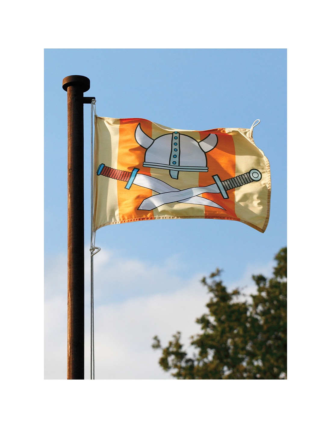 De schommelvlaggenset is gemaakt van polyester stof om goed te blijven drijven in de wind. Het biedt twee geweldige ontwerpen: eenhoorn en kasteel of wiking en piraat.