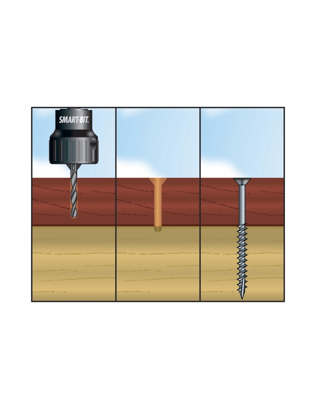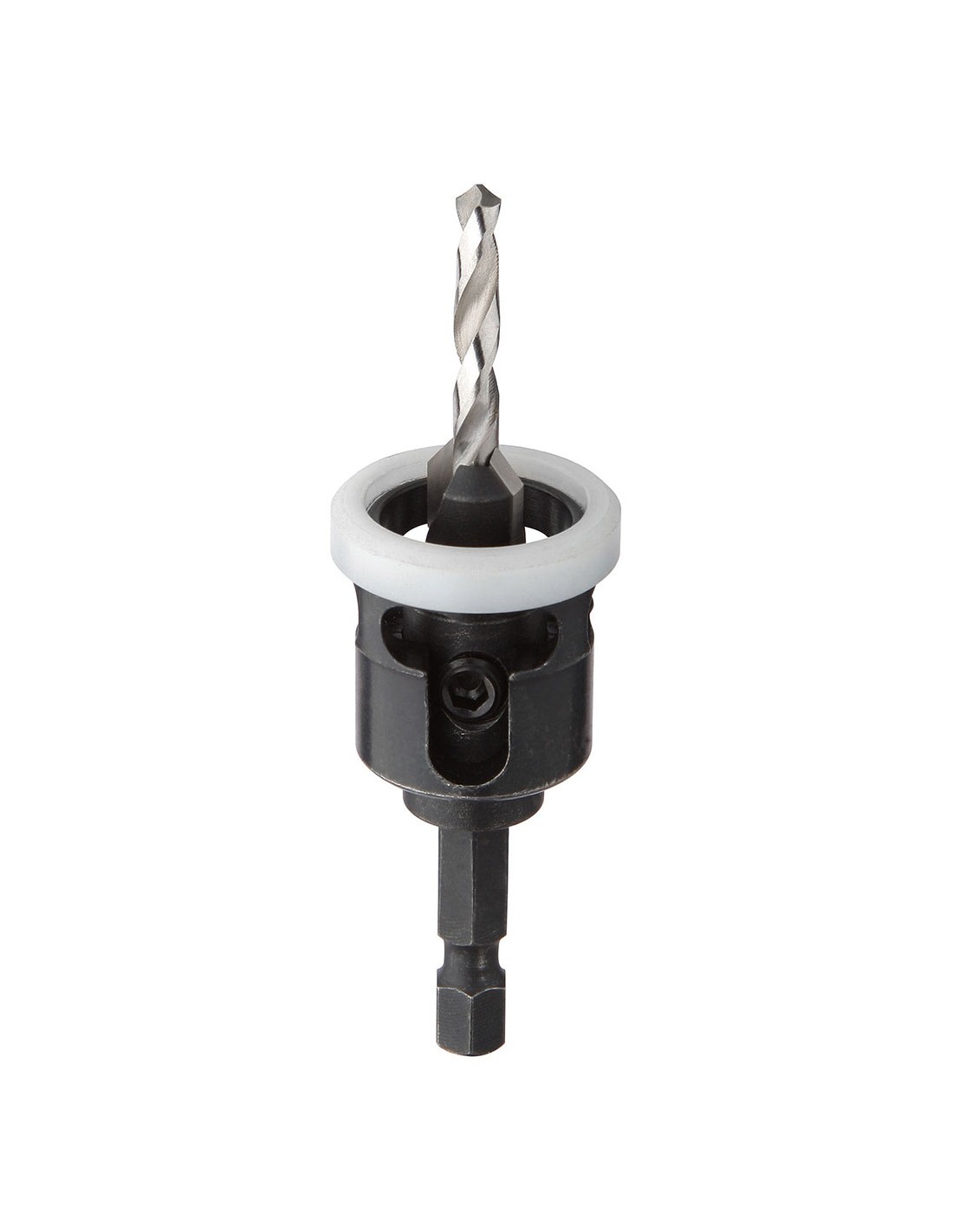Gereedschap voor het uitvoeren van een voorboorgat én frezen in één handeling, om de schroefkop netjes te plaatsen. De dieptestopper is verstelbaar en de kunststof ring voorkomt beschadiging van de terrasplanken. Dit systeem garandeert een constante boor- en freesdiepte.