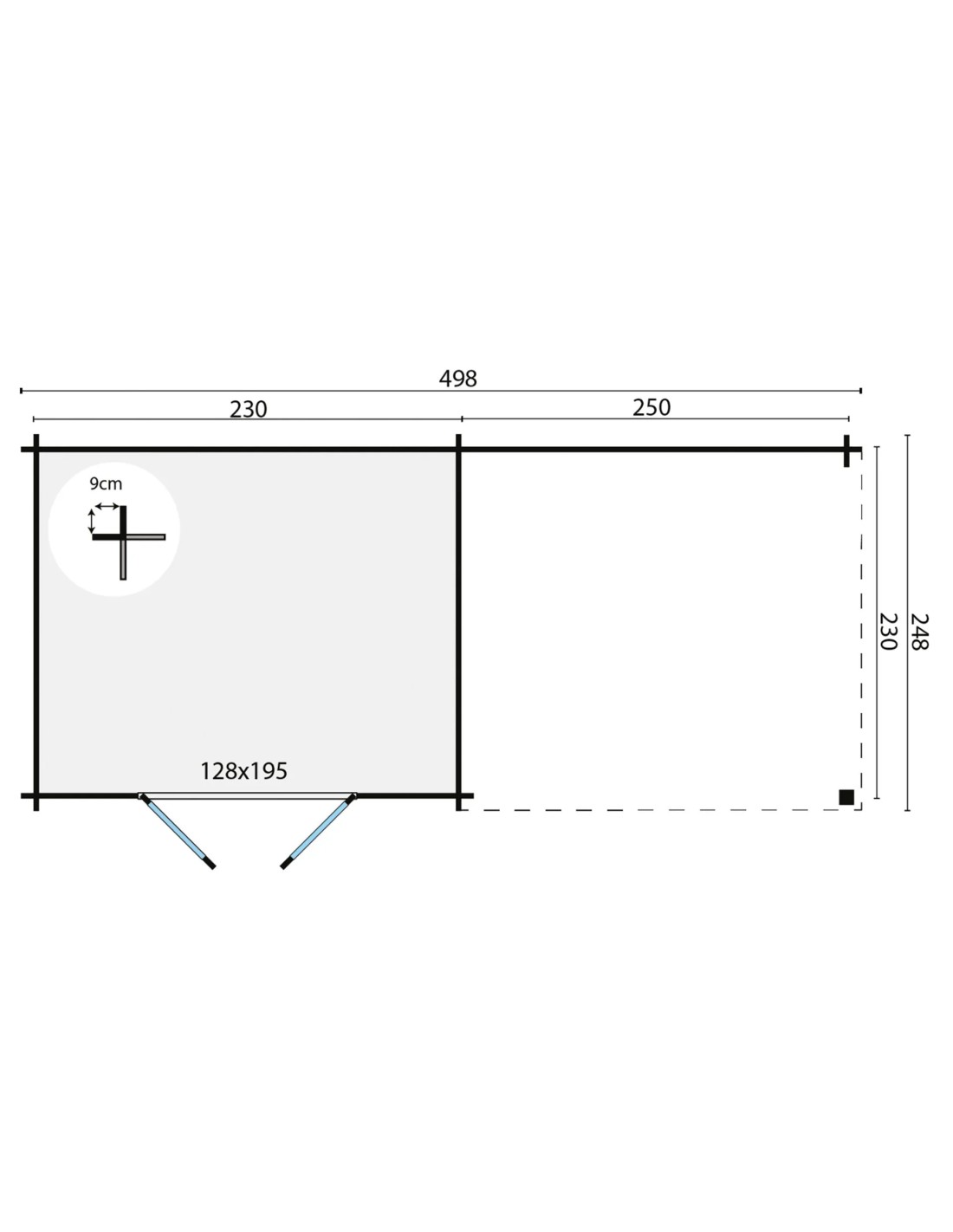 De dubbele glazen deur met 4 mm dikke ruiten en een cilinderslot verhoogt de veiligheid van uw tuinhuis. De zijwaartse verhoging voegt een uniek stijlelement toe en vergroot de beschikbare ruimte.