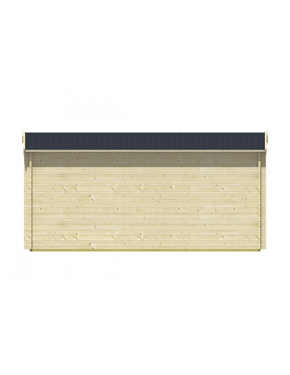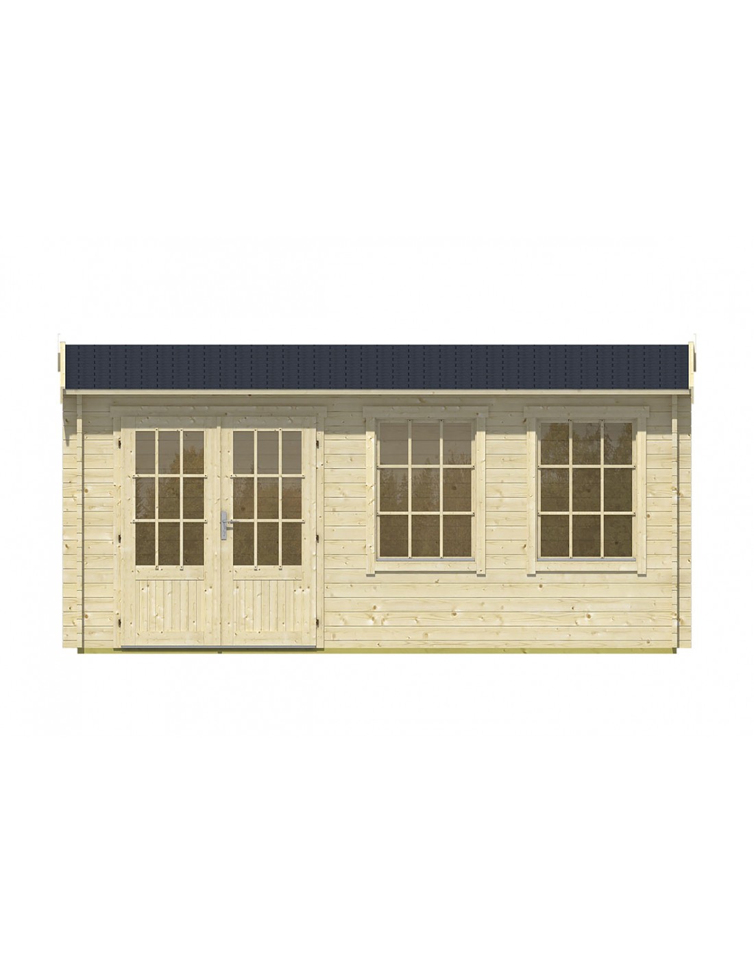 Lang of breed tuinhuis met dubbele ramen en dubbele glazen deuren. Ideaal voor mensen die een licht chalet willen met een grote entree.