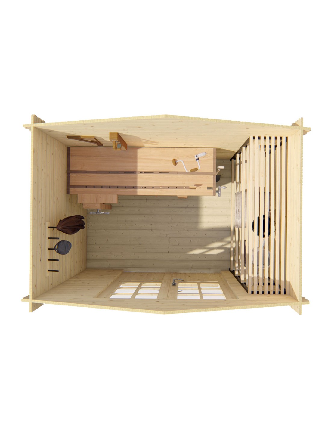 Tuinhuisje met dubbele glazen deur van bovenaf gezien zonder dak