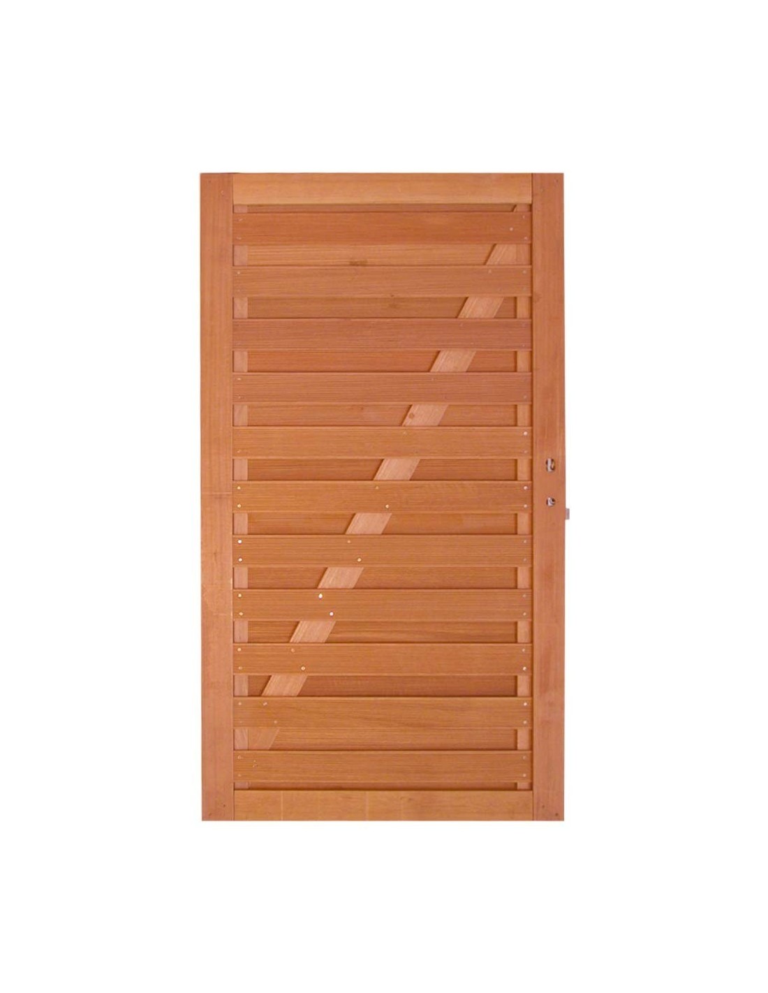 De rechterdeuren van het type Wezembeek met ingebouwde sloten (zonder cilinder) zijn gemaakt van Bangkirai en bevestigd in een frame van 42 x 42 mm. De poorten hebben een hoogte van 180 cm en een breedte van 100 cm. Gekenmerkt door de verfijnde structuur en een stevig kader, zijn ze perfect om uw tuin een stijlvolle uitstraling te geven.